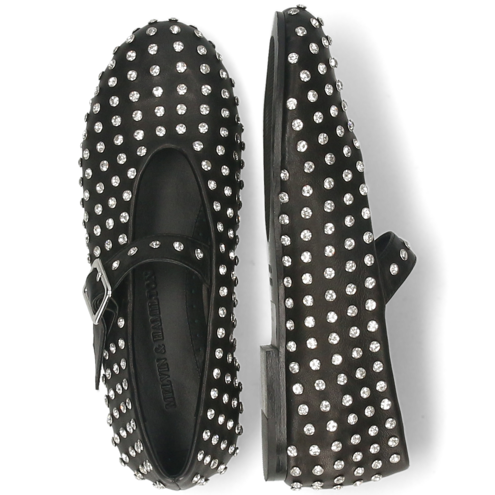 Ontdek de Emily 3 ballerina’s in zwart schaap leer, prachtig afgewerkt met fonkelende kristallen studs van Melvin & Hamilton. Dit model is met de hand vervaardigd uit uiterst zacht premium leer en combineert een tijdloos silhouet met een gedurfde, moderne twist. De iconische Mary Jane-band met verstelbare gesp zorgt voor elegantie én een goede pasvorm, terwijl de all-over kristallen afwerking een glamoureuze uitstraling geeft. Dankzij de comfortabele leer zool en zachte leren voering bieden deze ballerina’s langdurig comfort zonder in te boeten aan stijl. Perfect om casual outfits te verfijnen of chiquere looks aan te vullen – de Emily 3 schoenen zijn een veelzijdige toevoeging aan je garderobe.
