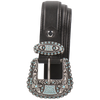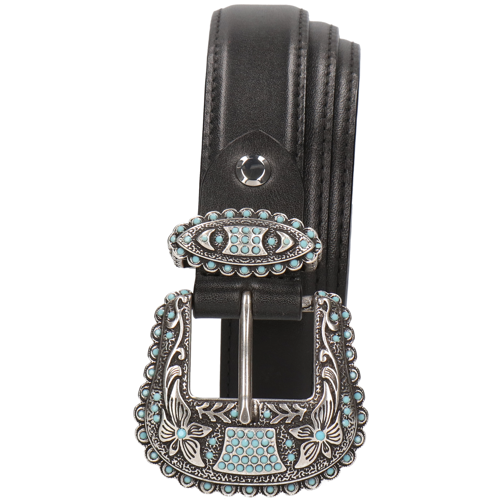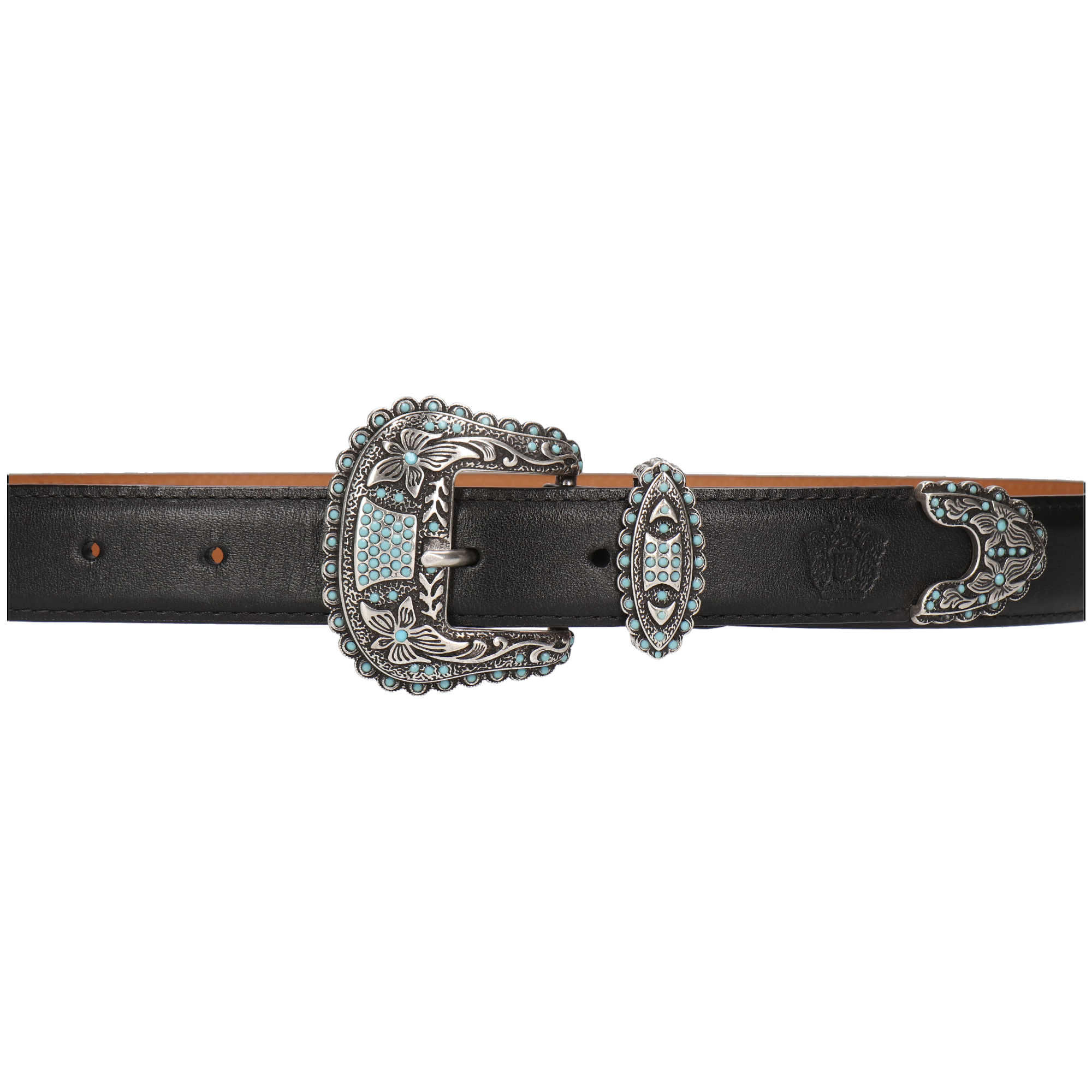 De lengte in centimeters wordt gemeten vanaf het derde gat in de riem tot aan de gesp. De breedte van damesriem Linda is 3 cm, terwijl herenriem Larry 4 cm is.