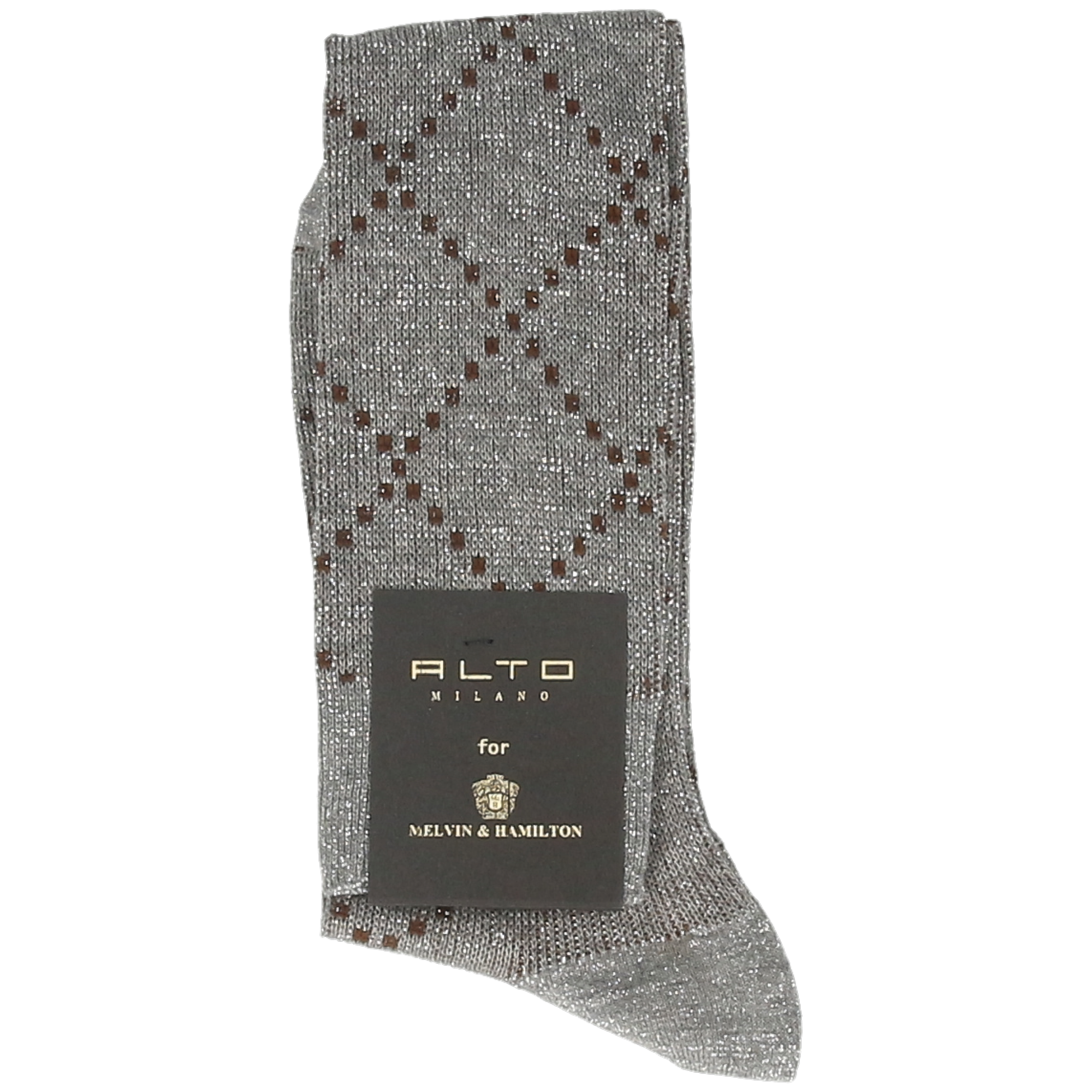 De lange Sete sokken in grijs maken indruk met hun hoge snit en glinsterende ontwerp met ruitpatroon. De Sete sokken zijn ontworpen en geproduceerd door Alto Milano voor Melvin & Hamilton. Ze zijn gemaakt van 80% katoen, 14% polyamide en 6% polyester, waardoor ze comfortabel en aangenaam zijn om elke dag te dragen.