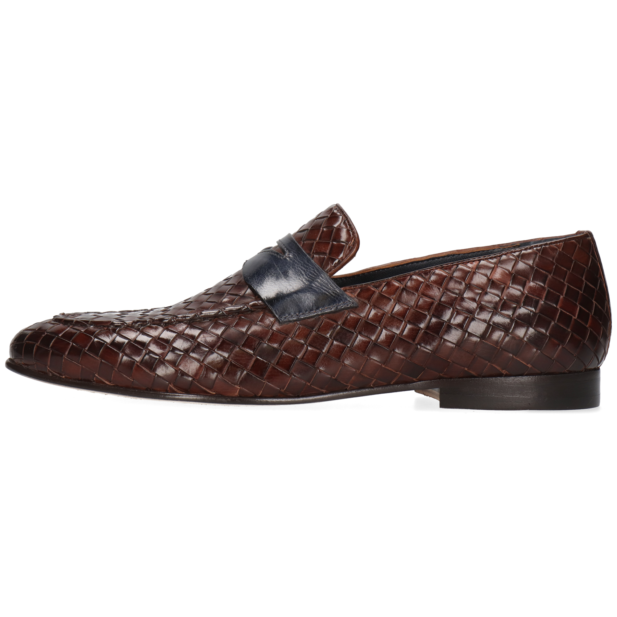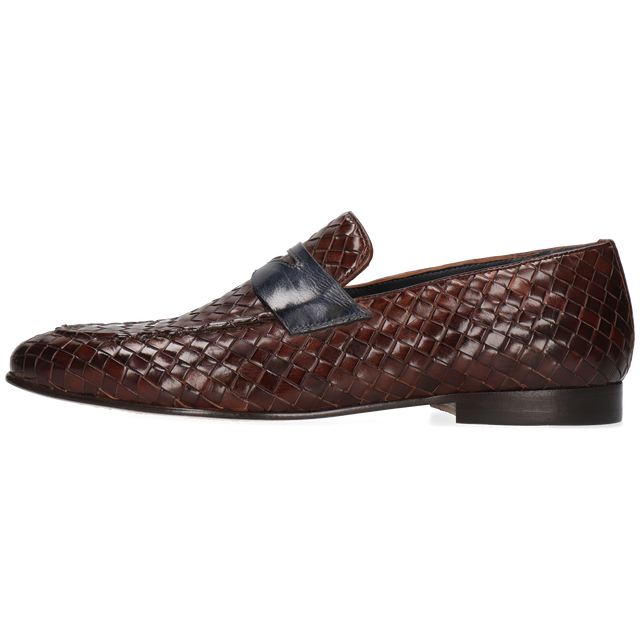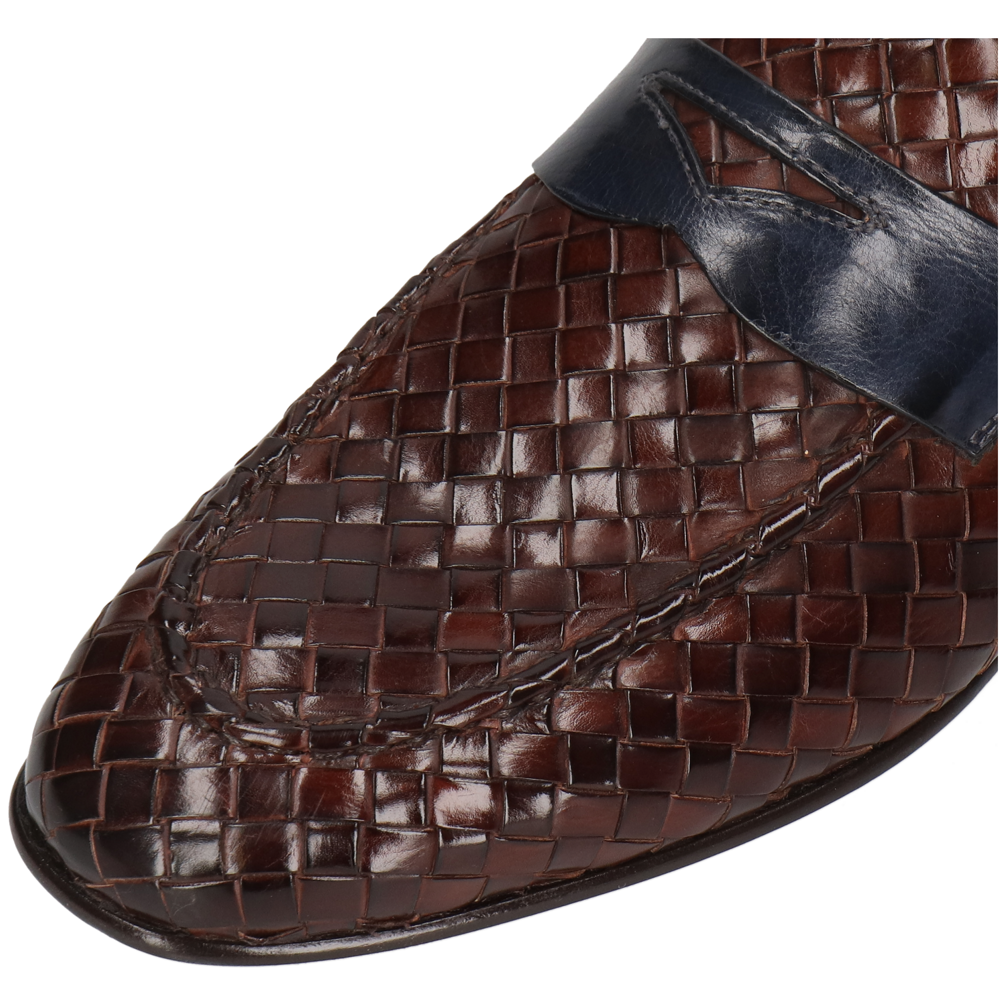 Gevlochten leer: borstel voorzichtig om stof en vuil tussen de vlechten te verwijderen. Veeg indien nodig licht af met een zachte doek. Breng een kleine hoeveelheid verzorgingscrème aan op het leer (vermijd overtollige crème tussen de openingen), laat het absorberen en poets lichtjes voor een zachte glans als je dat wilt. Vermijd het nat maken van de schoenen, dikke lagen was en sprays op alcoholbasis. Gebruik schoenspanners en bewaar de schoenen droog.