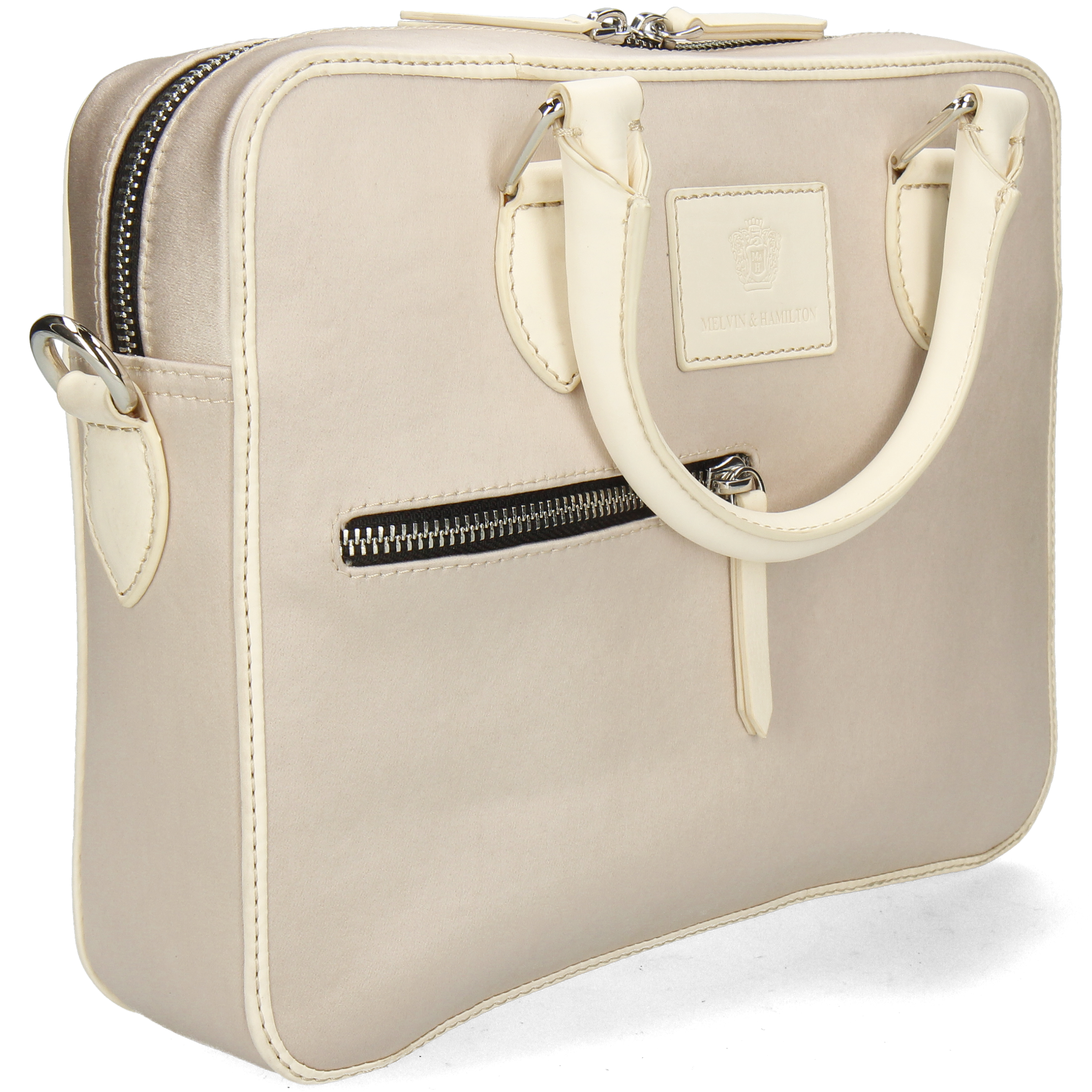 - Interior: 1 groot vak, 1 vak met rits, 2 kleine vakken